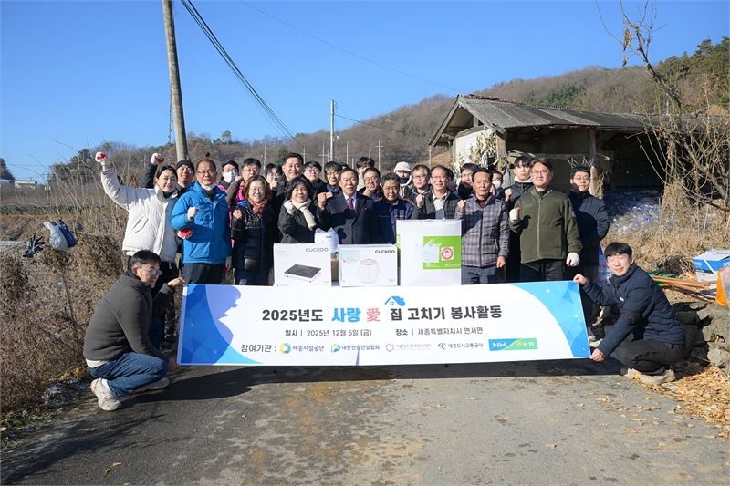 세종시 연서면지역사회보장협의체(공동위원장 김학용‧한재현)가 5일 관내 주거환경이 열악한 취약가구를 대상으로 ‘사랑애(愛)집 고치기’ 봉사활동을 진행했다.‘사랑애(愛)집 고치기’ 사업은 세종시설관리공단이 주관하고 연서면 지사협, 대한전문건설협회, 세종창조경제혁신센터, NH농협은행 등 여러 기관이 힘을 모아 진행하는 민‧관