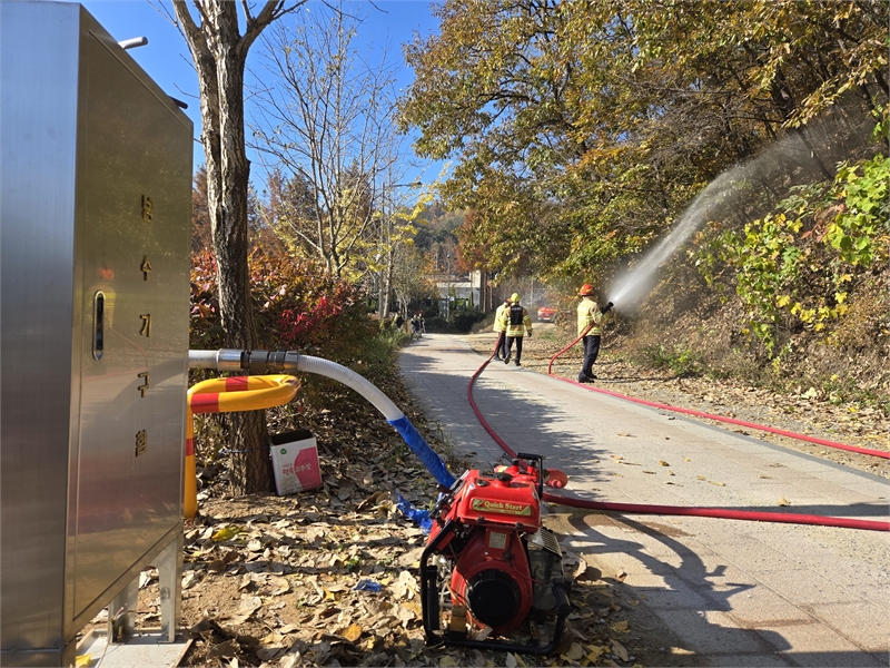 세종북부소방서(서장 김전수)가 산불 발생 위험이 높아지는 가을철을 맞아 12일 조치원읍 신안리 신안사 일원에서 산불 대응훈련을 실시했다.이번 훈련은 도심 인근에서 산불이 발생한 상황을 가정해 신속하고 효율적인 초기 대응체계 구축을 목표로 진행됐으며, 소방차 4대와 소방공무원 16명, 의용소방대원 10명 등 총 26명이