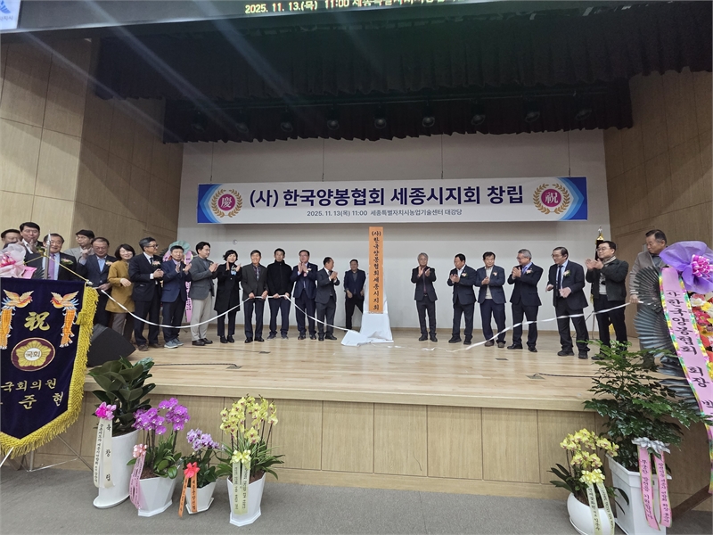 세종시의 양봉산업이 ㈔한국양봉협회 세종시지회의 공식 출범을 계기로 새로운 도약의 발판을 마련했다.세종시(시장 최민호)는 13일 세종시농업기술센터 교육관에서 시 관계자, 유관기관, 지역 양봉인 등 150여 명이 참석한 가운데 ‘제1회 양봉협회 세종시지회 승격 기념식 및 창립총회’를 개최했다. 이번 행사는 양봉협회 세종시지