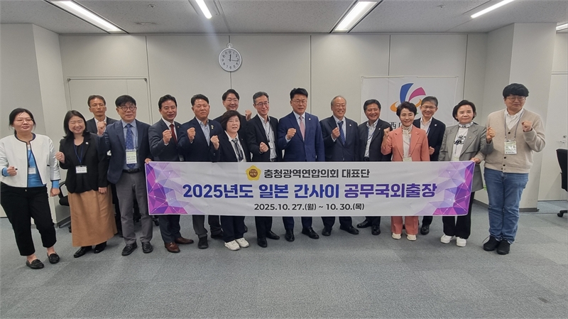 충청광역연합의회 대표단(노금식 의장 등 의원 7명, 직원 4명)은 충청광역연합과 연합의회의 정책 반영과 함께 전통문화 기반 도시재생과 일본 지방의회의 의정운영 모범사례 등을 조사하기 위해 10월 27일부터 30일까지 3박 4일 일정으로 일본 간사이 광역연합 행정 및 의회 기관, 지역 현장 등을 방문한다.대표단은 첫날 2