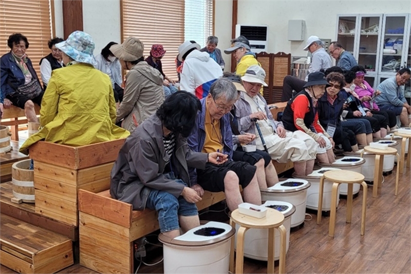 김영섭 회장 등 세종시 이북5도민 35명이 참여한 가운데 국가산림 문화자산인 진안의 용담댐과 운일암반일암 등을 둘러보고 진안고원 치유숲에서 홍삼족욕, 허브소금, 향기테라피 체험을 하는 순서로 진행됐다.