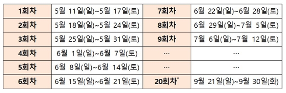 행사는 모두 20회차로 운영하며, 회차별로 1인당 최대 2만 원까지 환급받을 수 있다.