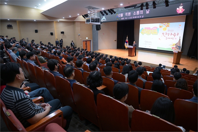한편 이날 직원소통의 날 행사에는 고기동 전 행정안전부 차관이 ‘현실정책’을 주제로 현장 중심의 정책에 대한 생생한 특강을 진행해 참석자들에게 큰 호응을 얻었다.
