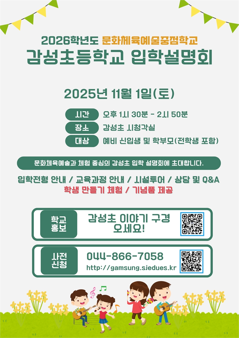 한편, 감성초는 11월 1일(토) 오후 1시 30분에 2026학년도 신입생을 위한 학교 설명회를 진행할 예정이다.