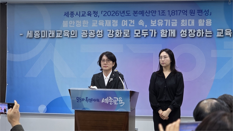 세종시교육청(교육감 권한대행 부교육감 구연희)은 10일 오전 교육청 대회의실에서 언론 브리핑을 열고, 2026년도 예산안을 1조 1,817억 원으로 편성하고 교육의 공공성을 강화해 모두가 함께 성장하는 교육을 실현하겠다고 밝혔다.