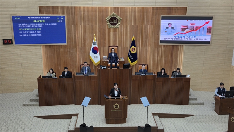 사회종합 > 국회/의회 세종시의회 제102회 2차 본회의 열어 세종우먼 승인 2025.11.12 12:40 | 최종 수정 2025.11.12 13:56 0 여미전 의원이 세종시의회 제102회 2차 본회의에서 5분 자유발언을 하고 있다. 세종시의회(의장 임채성_는 12일 오전 시의회 본회의실에서 제102회 2차 본회의를 열었다.오늘 2차 본화의에서는 여미전, 김효숙, 김영현, 홍나영, 김광운, 윤지성 의원의 5분 자유발언과 이현정 의원의 시정 질문(지역사 검증체계 구축을 통한 신뢰성 있는 행정 구현)이 있었다. 0 0 세종우먼 세종우먼 yykim0120@naver.com 세종우먼의 기사 더보기