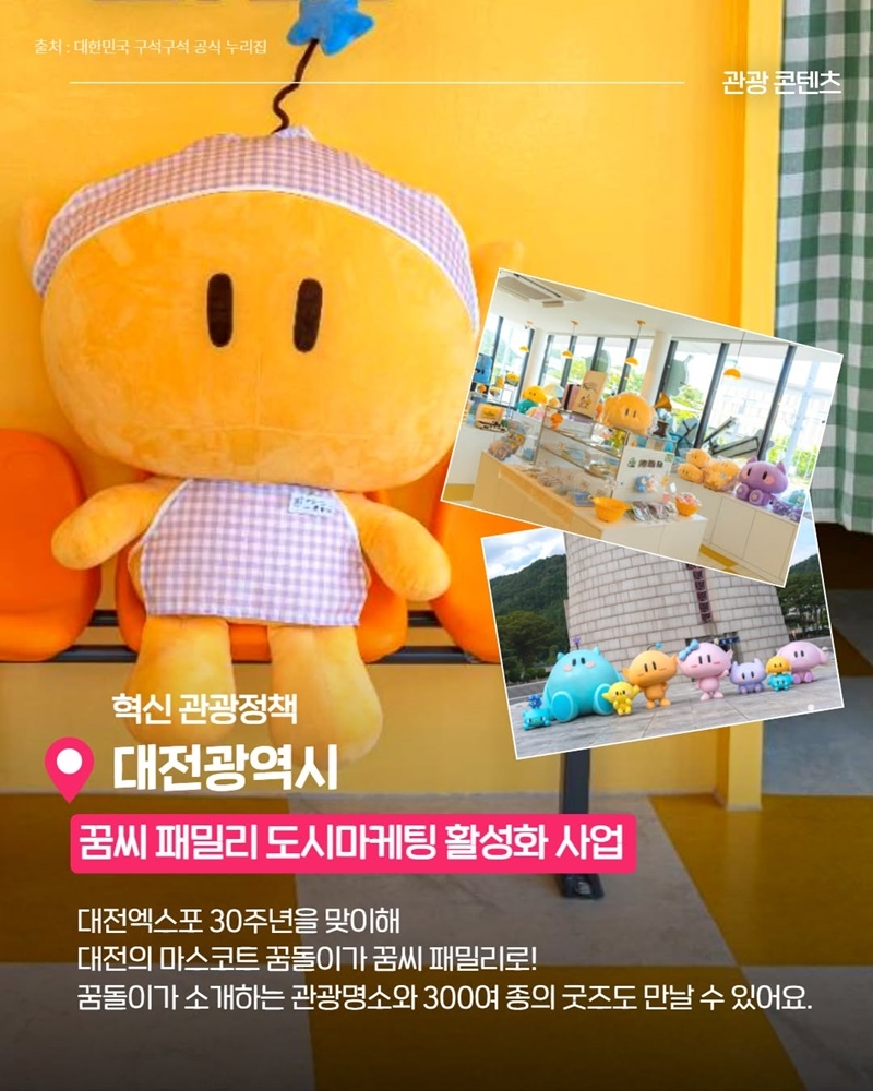 꿈돌이가 소개하는 관광명소와 300여 종의 굿즈도 만날 수 있어요.