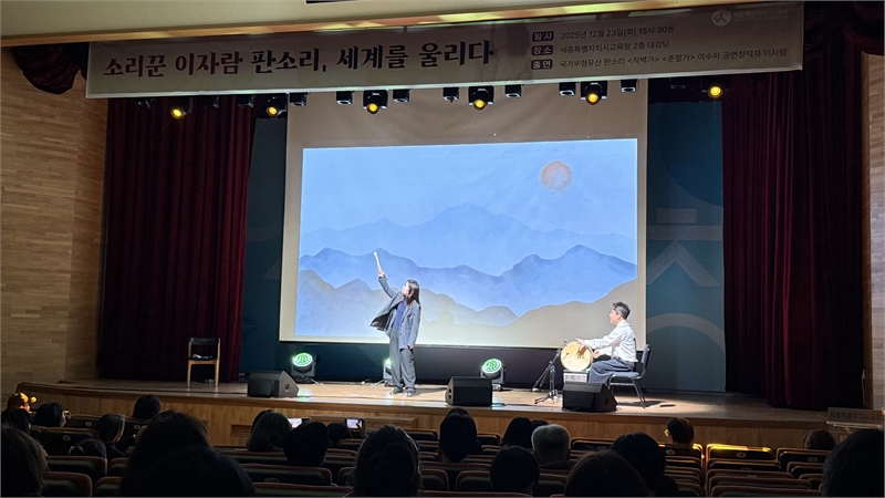 세종시교육청(교육감대행 부교육감 구연희)은 12월 23일에 2층 대강당에서 학생과 학부모, 교직원 등 세종 교육공동체를 대상으로 ‘2025년 우리동네 예술학교 예술명사 초청프로그램 소리꾼 이자람: 판소리, 세계를 울리다’를 성황리에 마쳤다고 밝혔다.