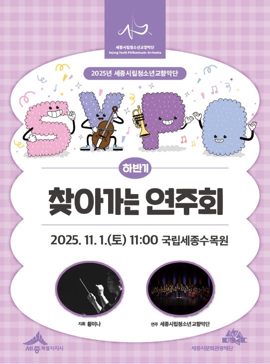 세종시립청소년교향악단(단장 최민호)이 내달 1일 오전 11시 국립세종수목원에서 올해 마지막 ‘찾아가는 연주회’를 진행한다.이날 연주회는 국립세종수목원에서 매해 가을에 운영하는 ‘가을음악회’와 연계해 대중적인 클래식 음악으로 시민들에게 풍성한 문화생활을 제공하기 위해 마련됐다. 연주회에서는 대중적으로 잘 알려진 클래식 음
