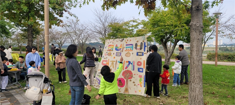 세종시 한빛유치원(원장 안은희, 공립 단설유치원)은 생태교육과 연계한 학부모 참여수업의 일환으로 10월 21일(화), 유치원 앞 숲바람 수변공원에서 ‘한빛 가족 가을 놀이터’ 행사를 개최했다.