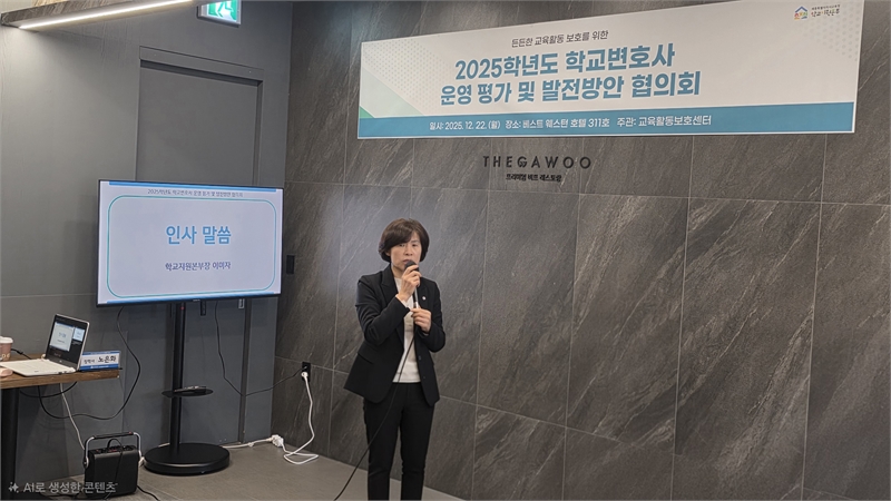 또한 ▲법률지원 서비스의 실효성을 높이기 위한 구체적인 개선 방안을 논의하고, ▲2026학년도 학교변호사 운영 방향을 안내하는 한편, 지역교권보호위원회 운영과 학교 법률지원 체계의 합리성을 확보하는 방안에 대해 심도 있는 협의를 진행했다.